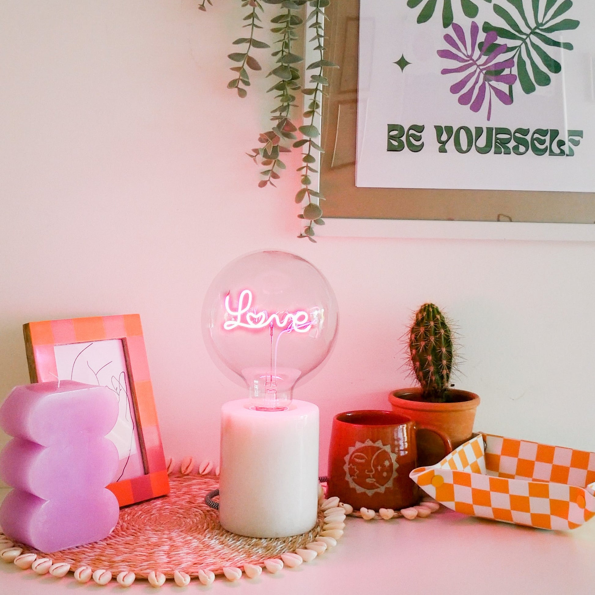 LOVE (pink) / LOVE (white) / HEART SHAPE (pink) / HEART SHAPE (white) / DREAM / GOOD VIBES/ PRIDE / GLOW UP/ KISS ME / LOVE YOU/ BITCH PLEASE / PEACE / SMILE / DISCO / GIN PINK/ GIN GREEN