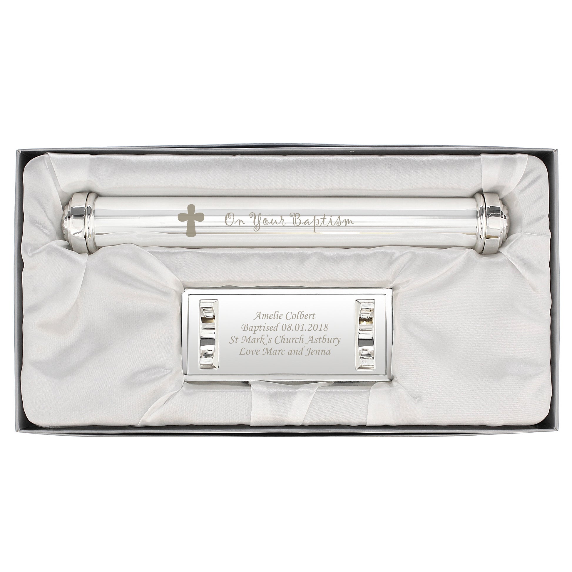 The wording 'On Your Baptism' featured on the holder is fixed text.