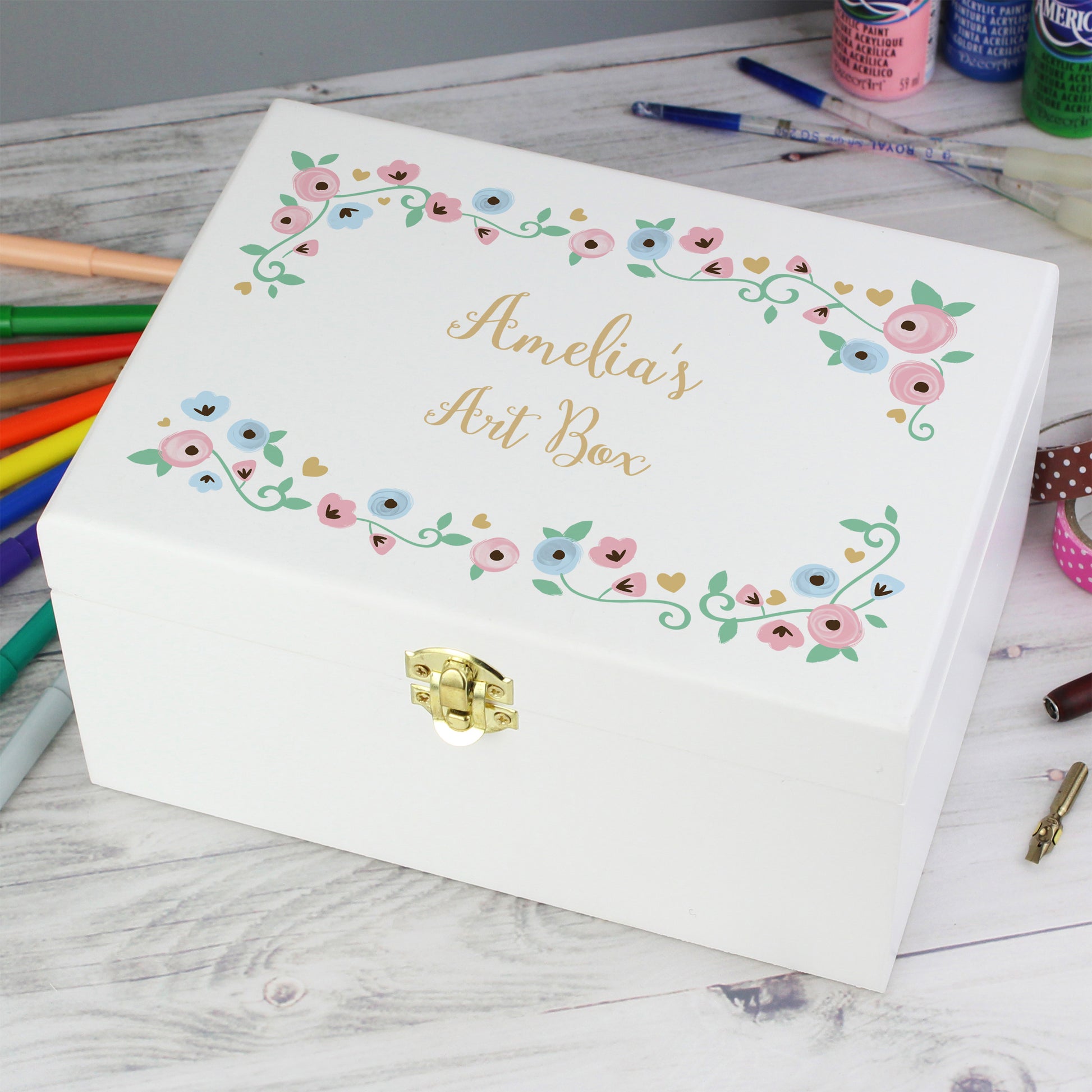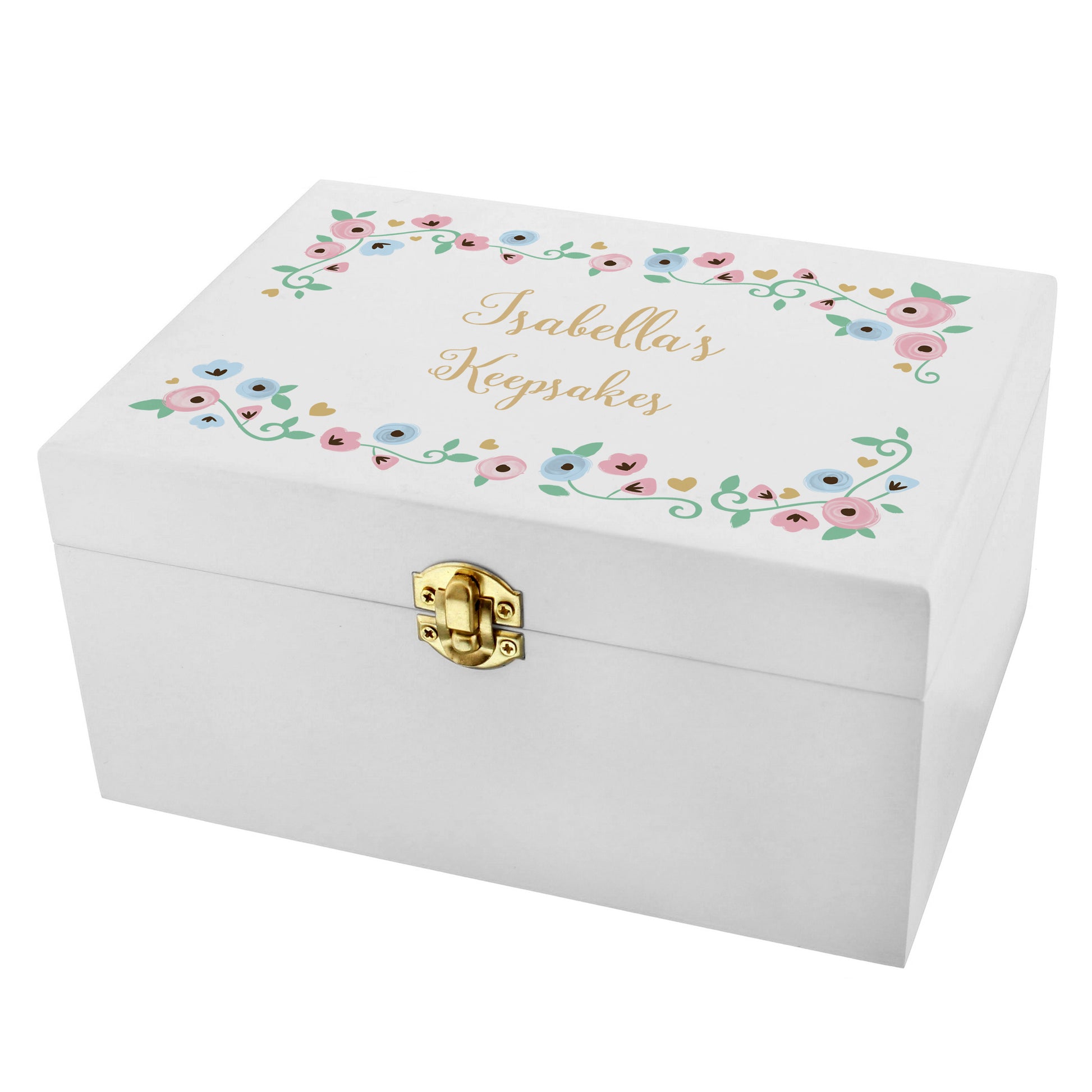 Personalised Fairytale Floral White Wooden Keepsake Box