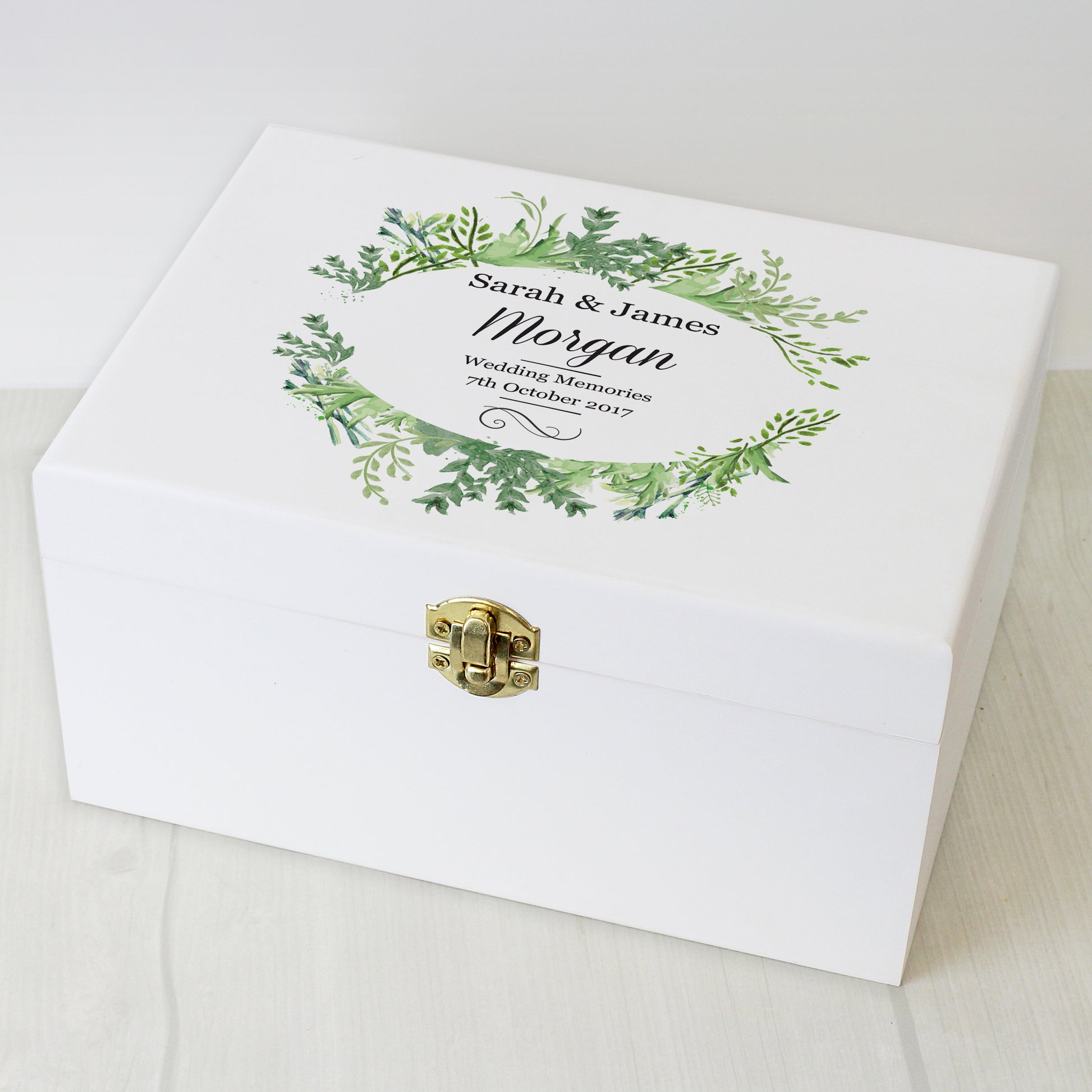 Personalised Fresh Botanical White Wooden Keepsake Box