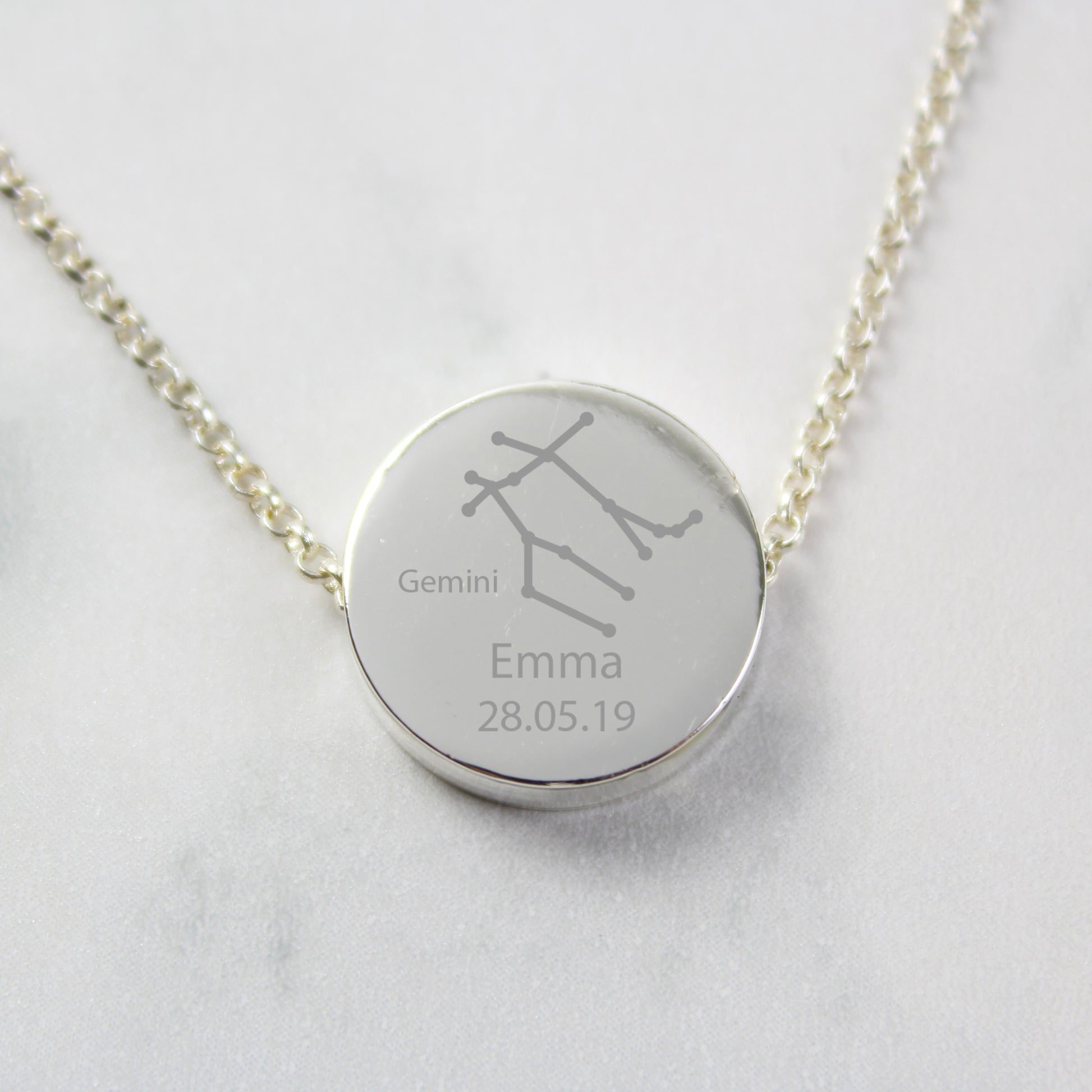 Personalised Gemini Zodiac Star Sign Silver Tone Necklace (May 21st - June 20th)