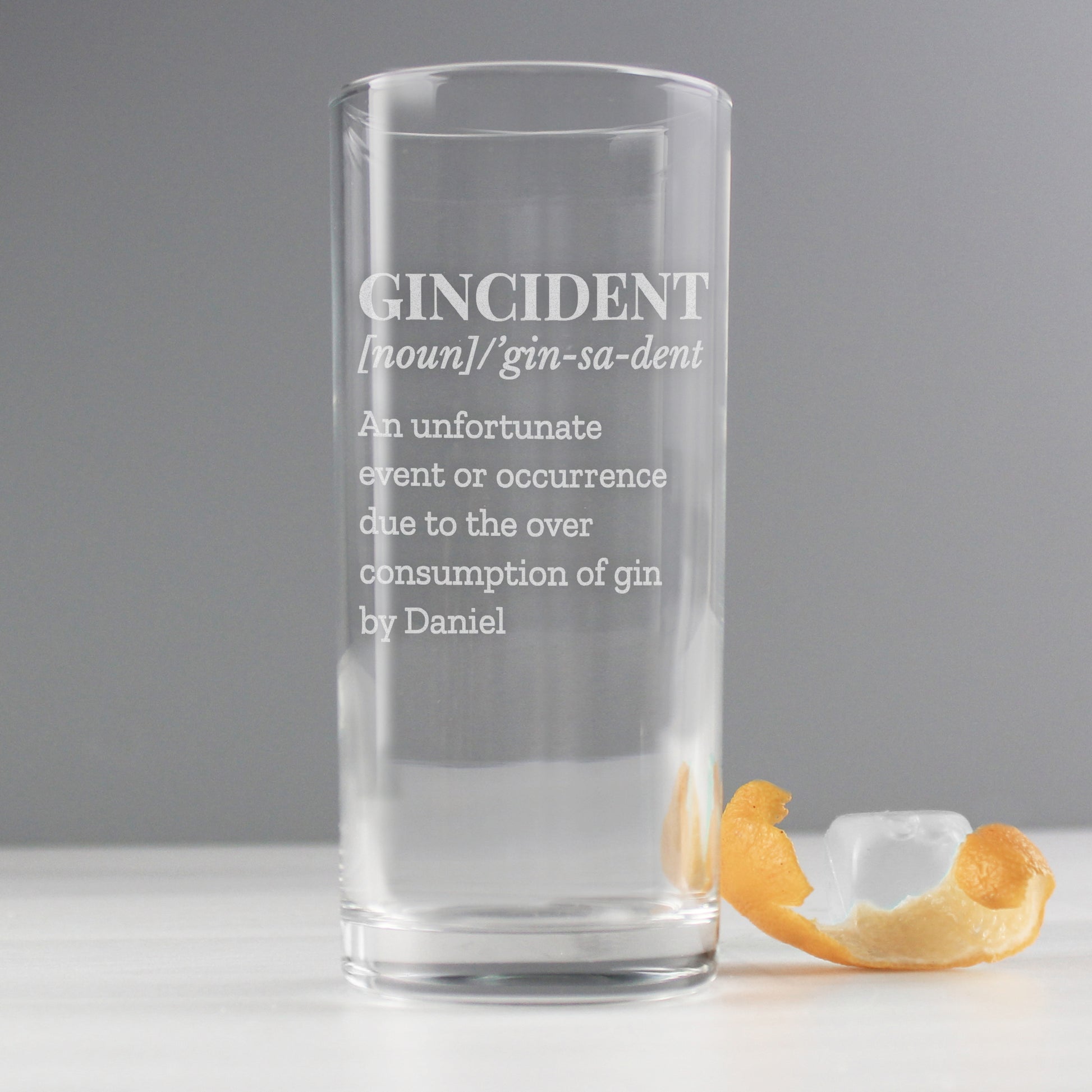 The words 'GINCIDENT [noun] /'gin-sa-dent' and 'An unfortunate event or occurrence due to the over consumption of gin by' are fixed and cannot be amended.