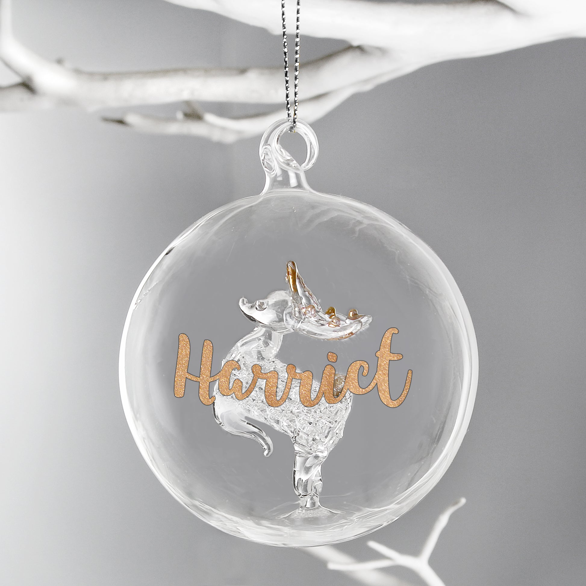 Personalised Gold Glitter Name Only Reindeer Glass Bauble