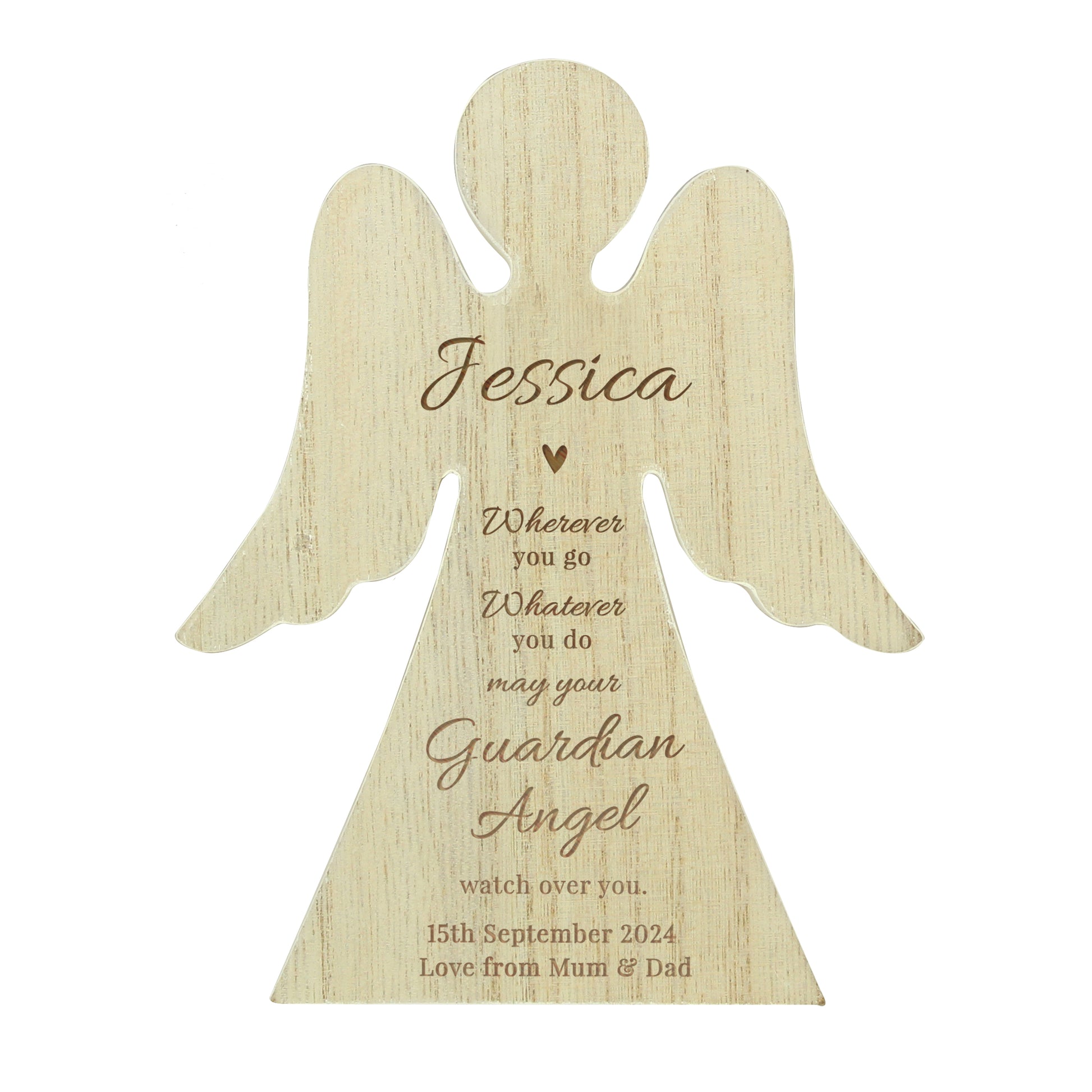 Personalised Guardian Angel Rustic Wooden Angel Decoration