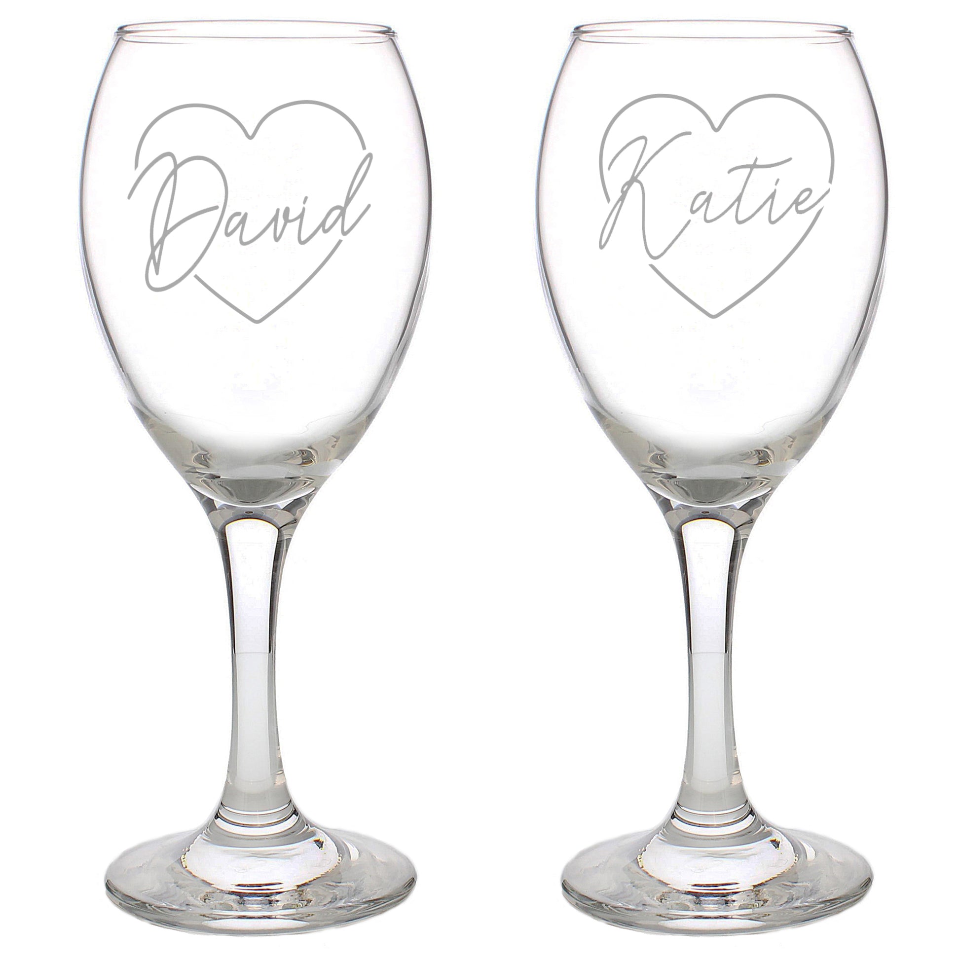 Both of these personalised wine glasses can be personalised with a name up to 12 characters long.