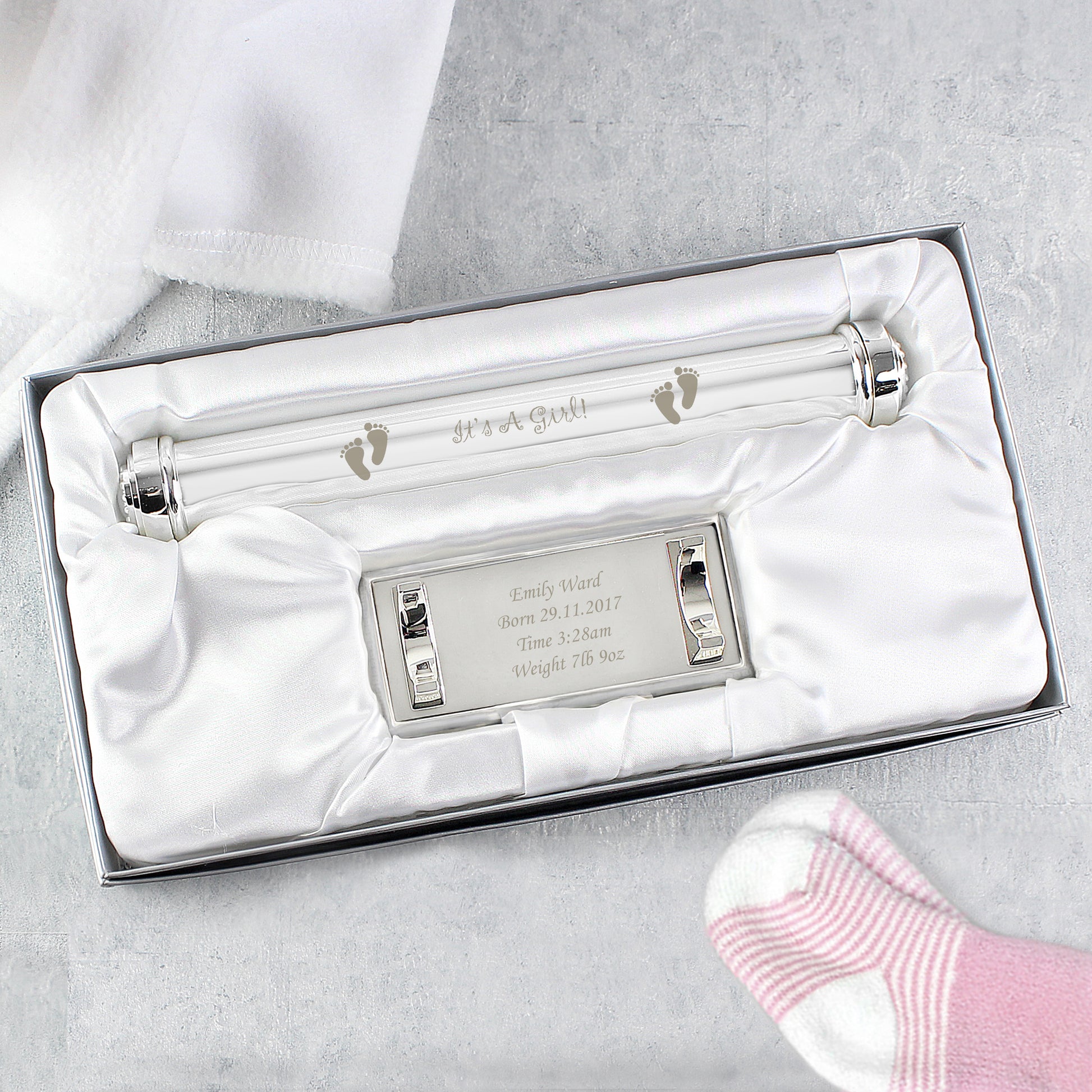Personalised Its A Girl Silver Plated Certificate Holder