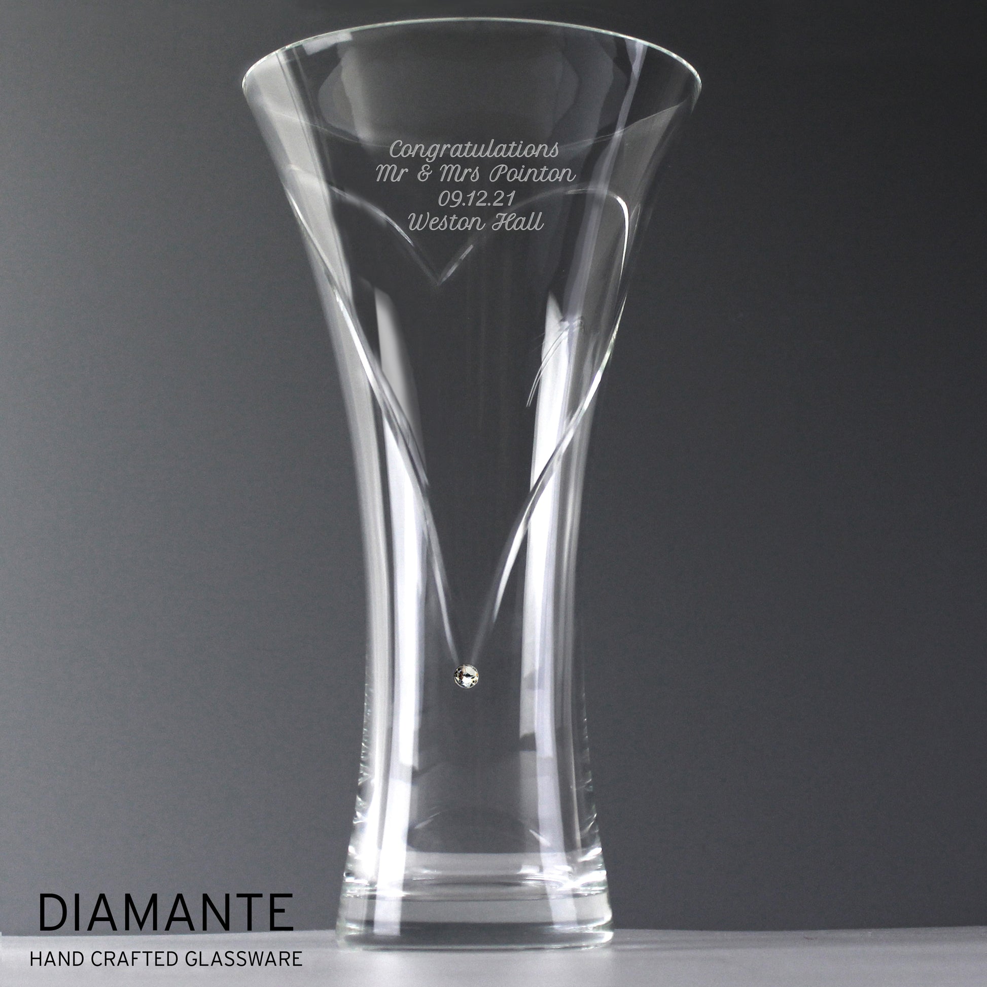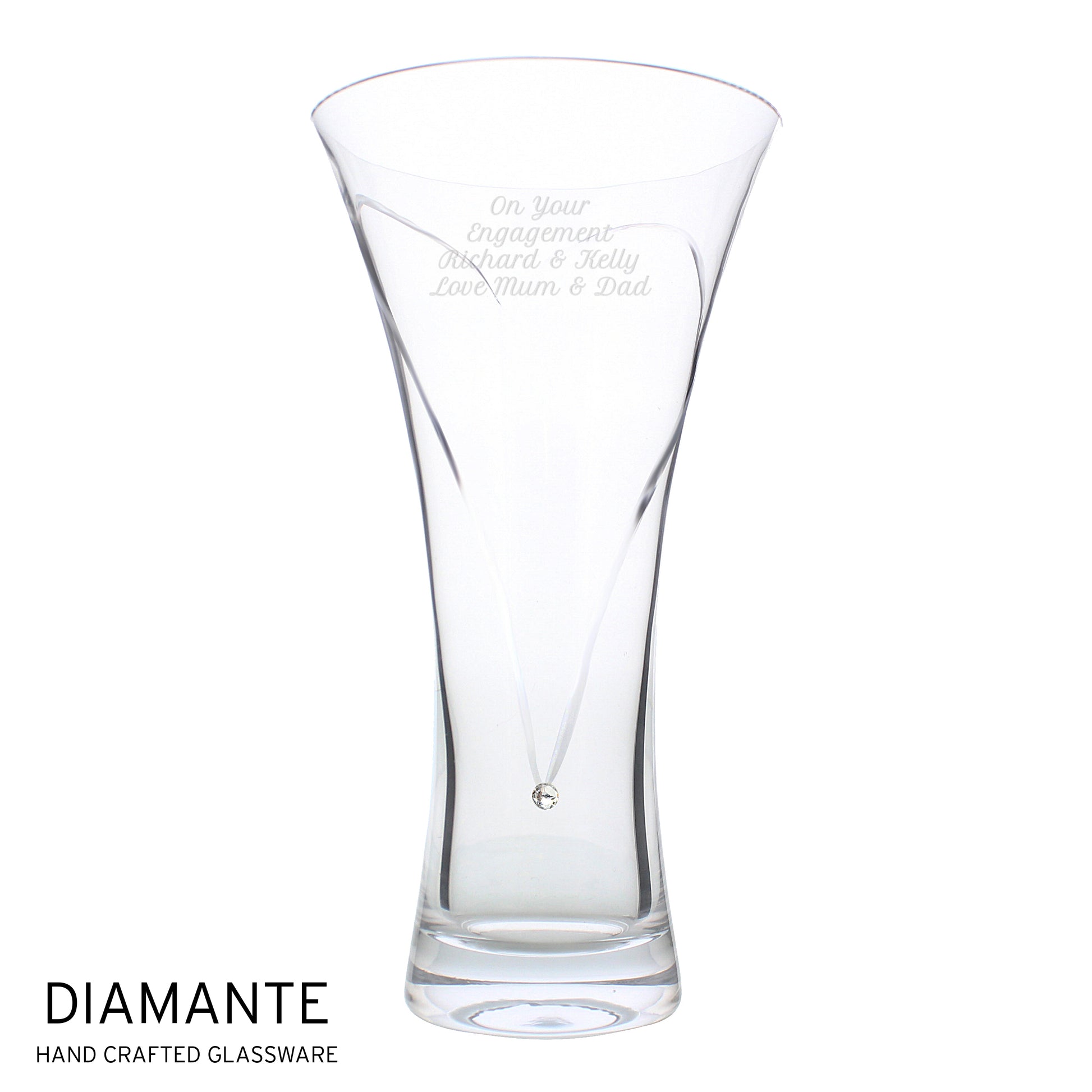 Personalised Large Hand Cut Diamante Heart Vase