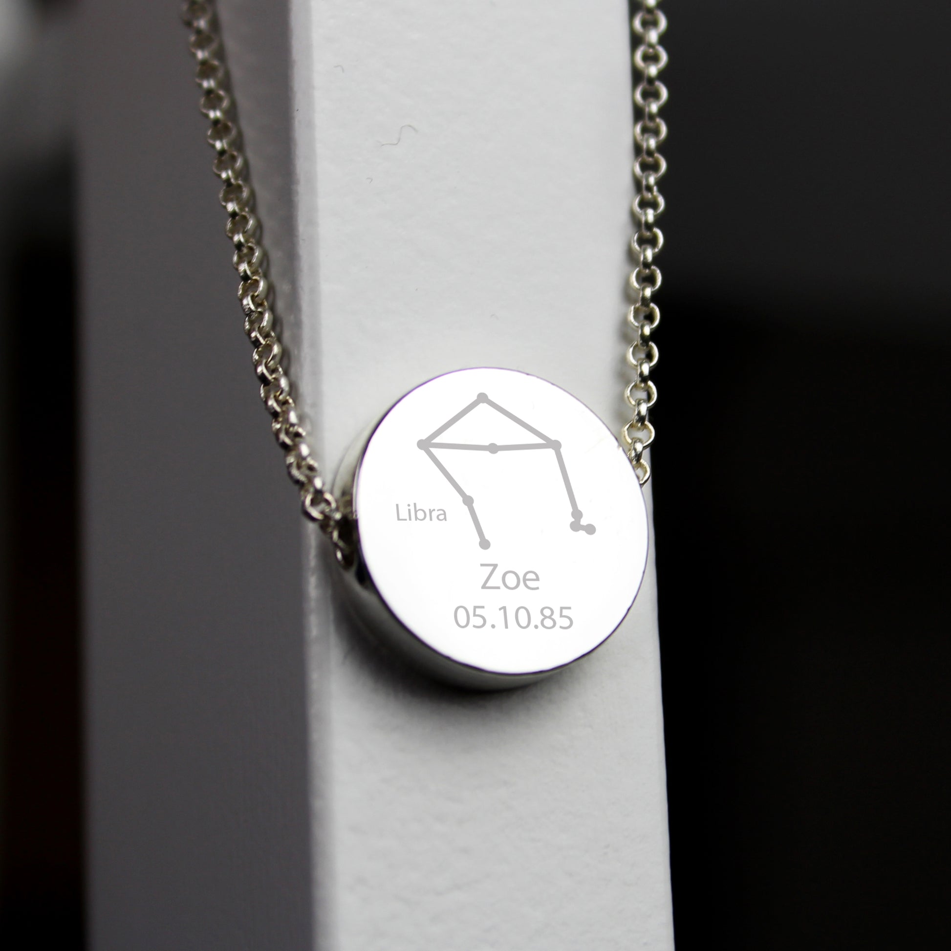 Personalised Libra Zodiac Star Sign Silver Tone Necklace (September 23rd - October 22nd)