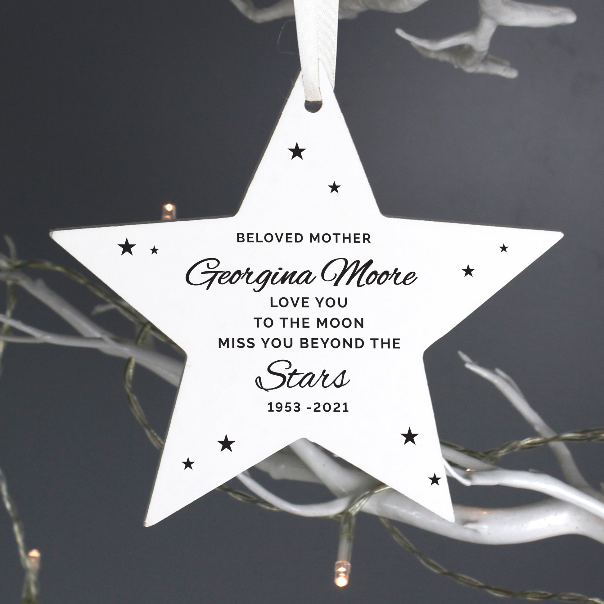 Personalised Miss You Beyond The Stars Wooden Star Decoration