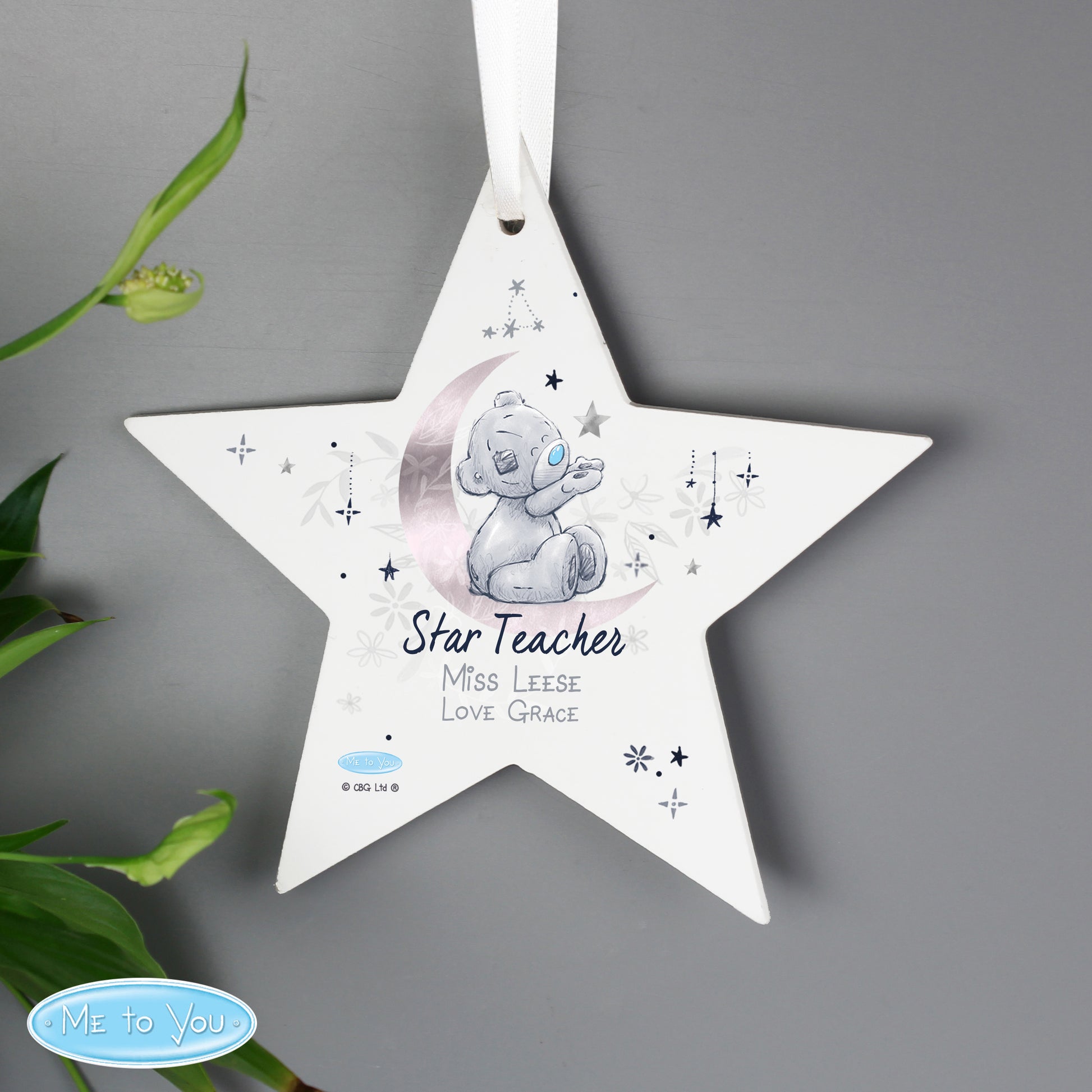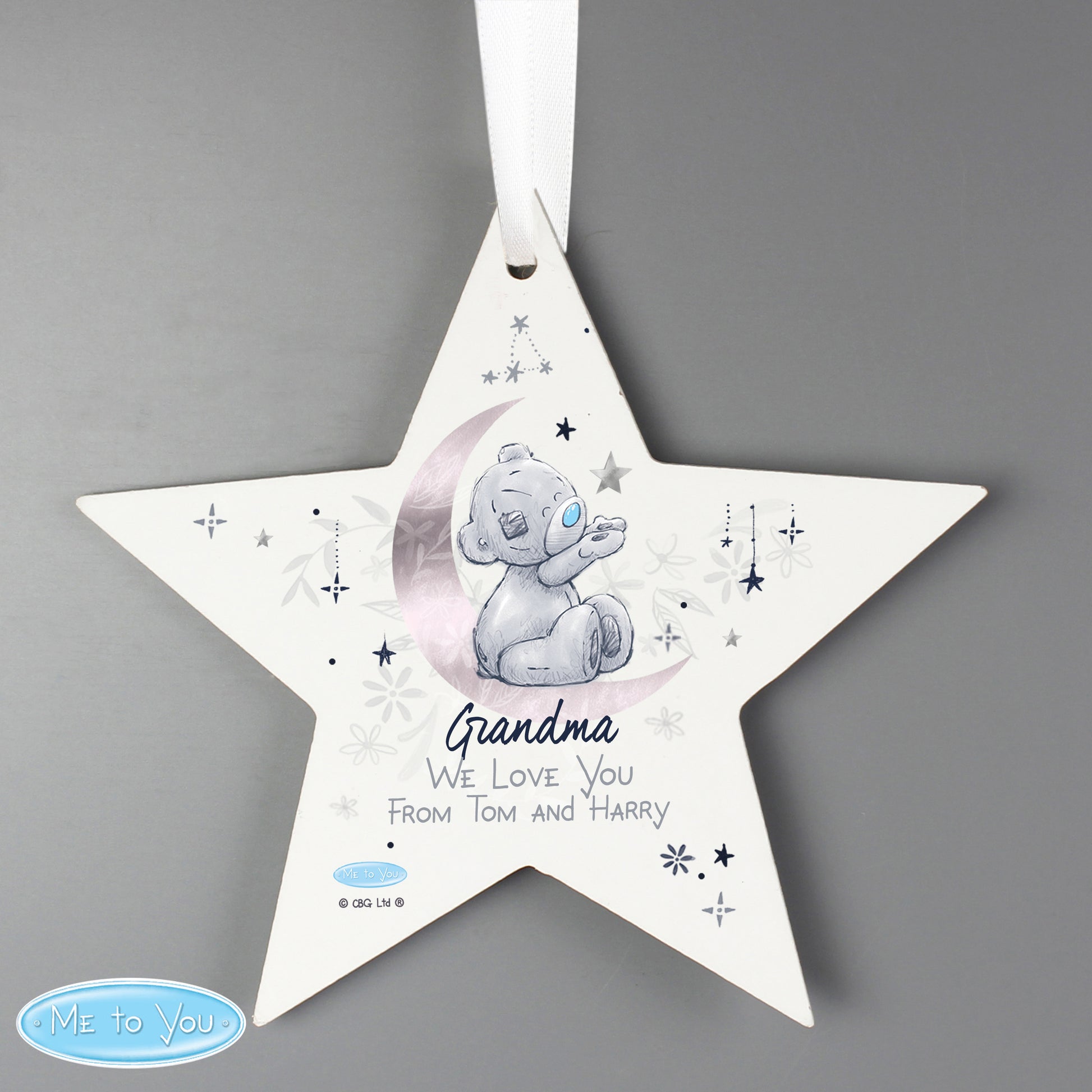 Personalised Moon & Stars Me To You Wooden Star Decoration