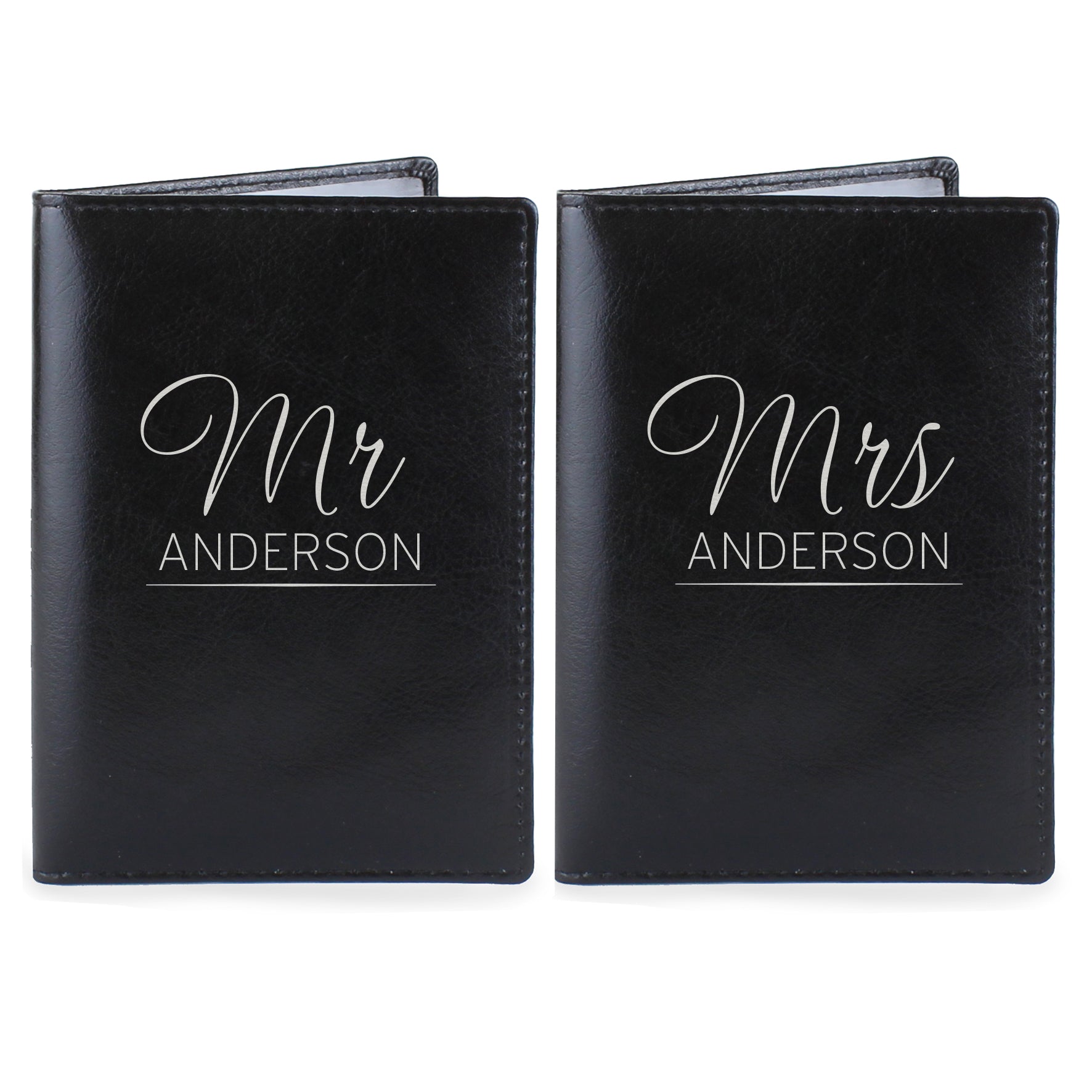You can personalise this passport holder set with a surname up to 12 characters long. The words "MR" and "MRS" are fixed. All personalisation entered will appear in UPPERCASE.