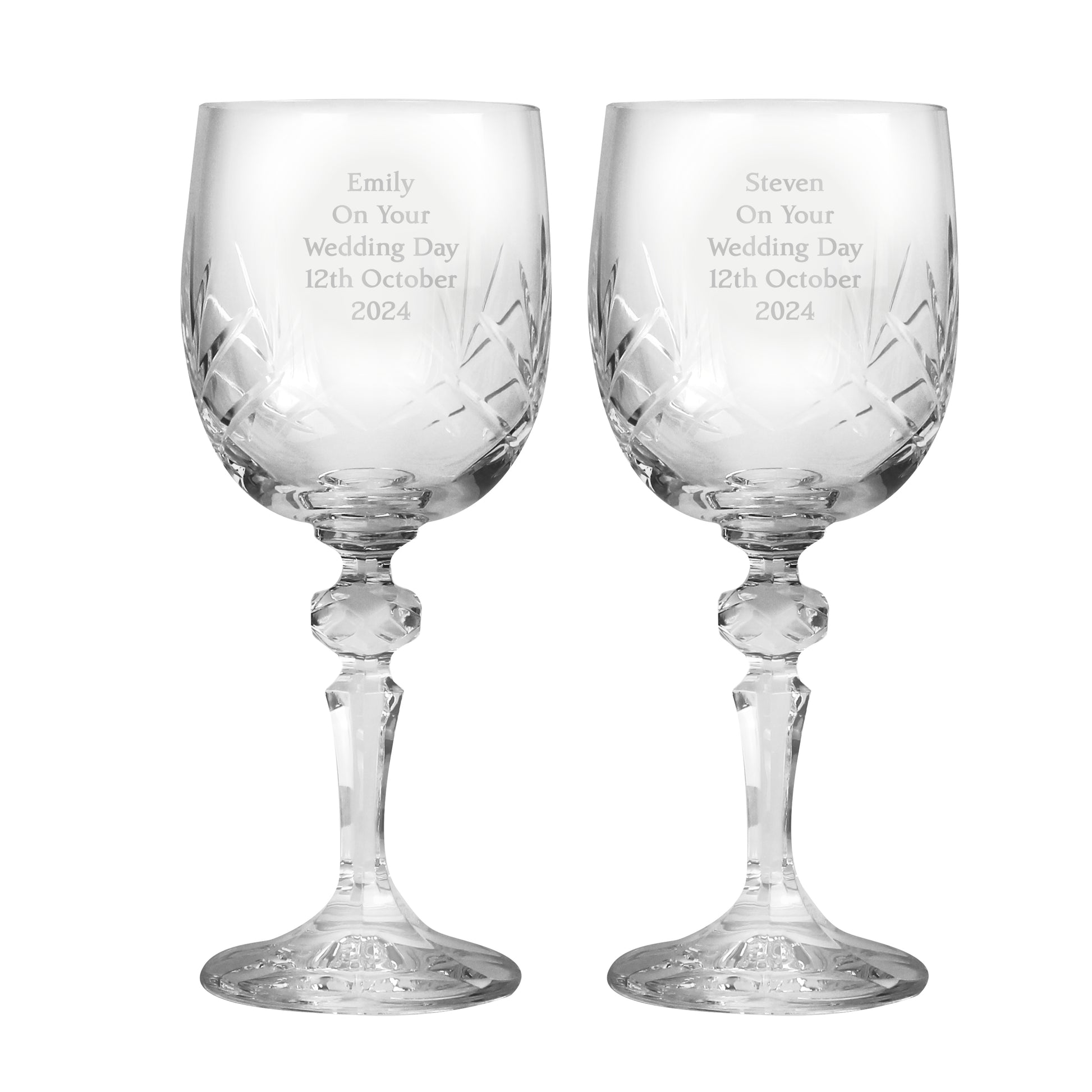 Each glass can be personalised with any message over 5 lines on each glass and up to 20 characters per line.