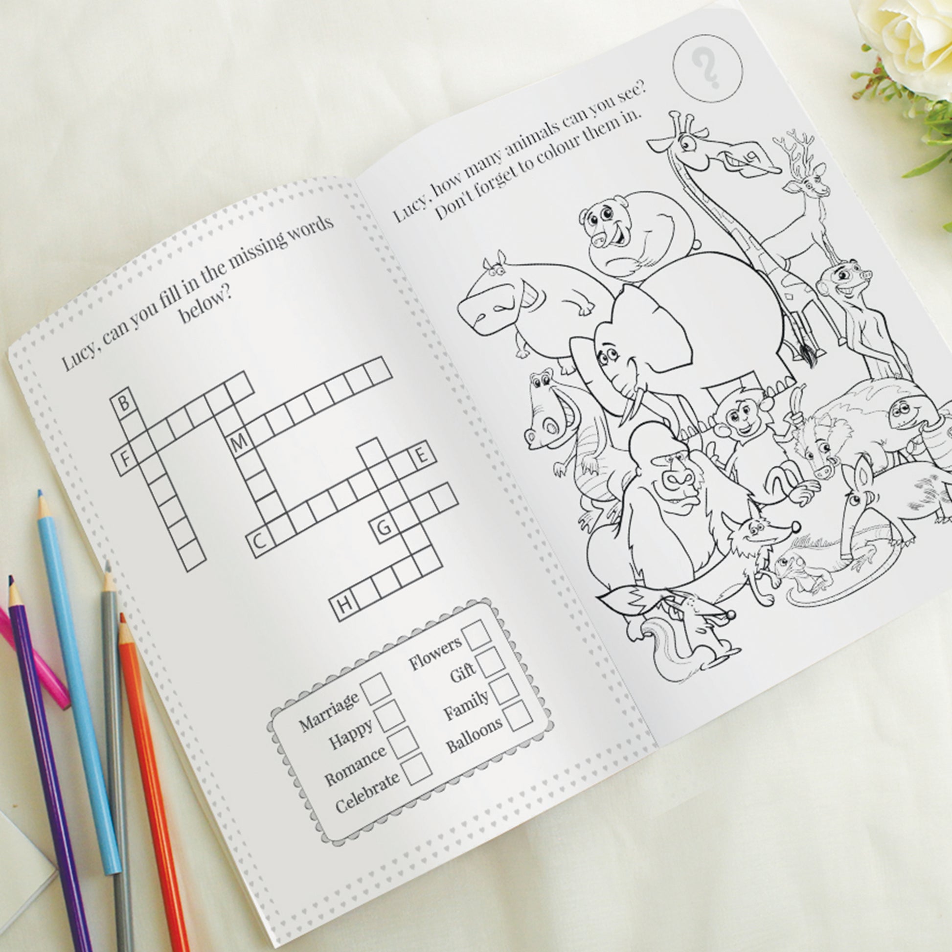 Personalised Pink A4 Wedding Activity & Colouring Book