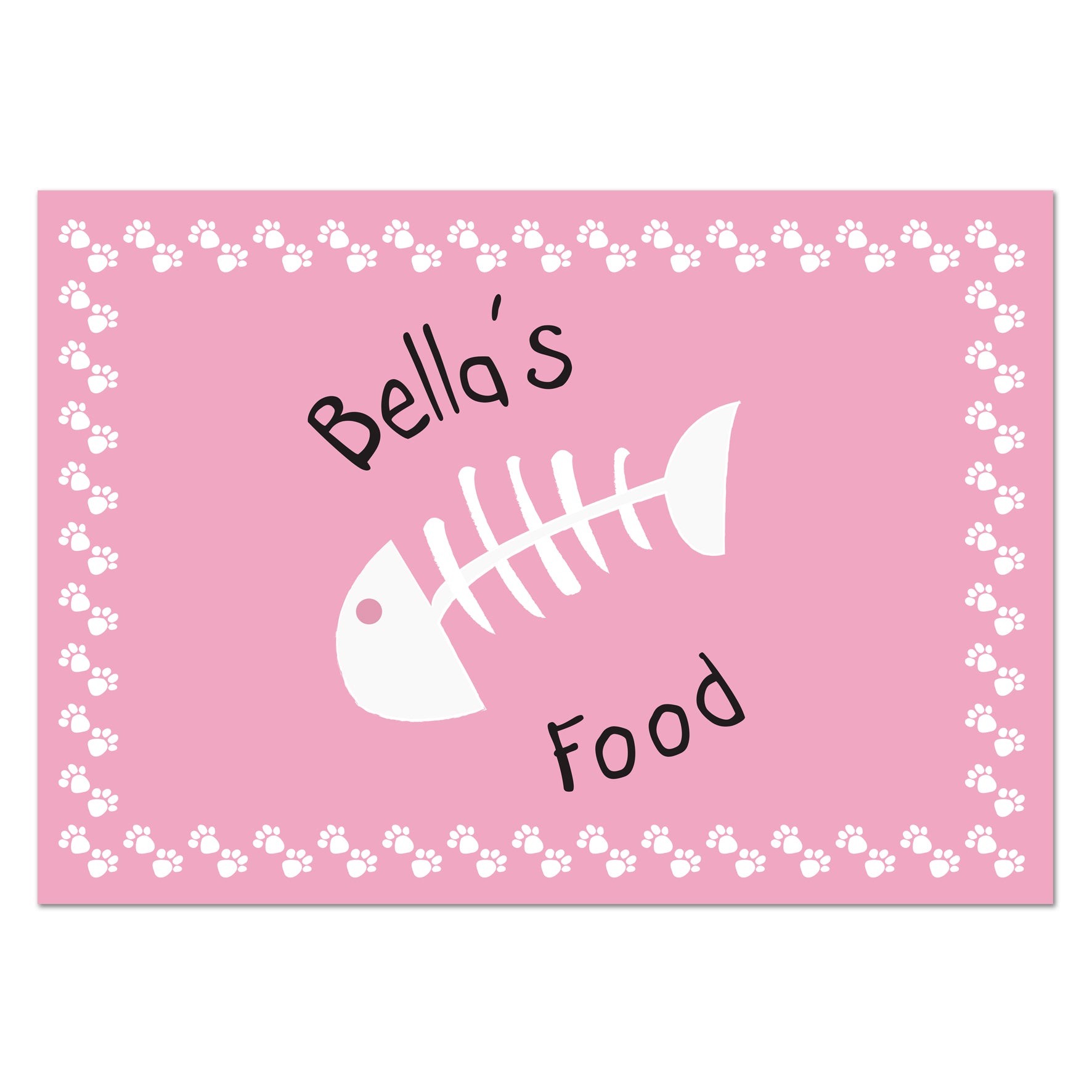 Personalised Pink Fish Bone Cat Pet Bowl Mat