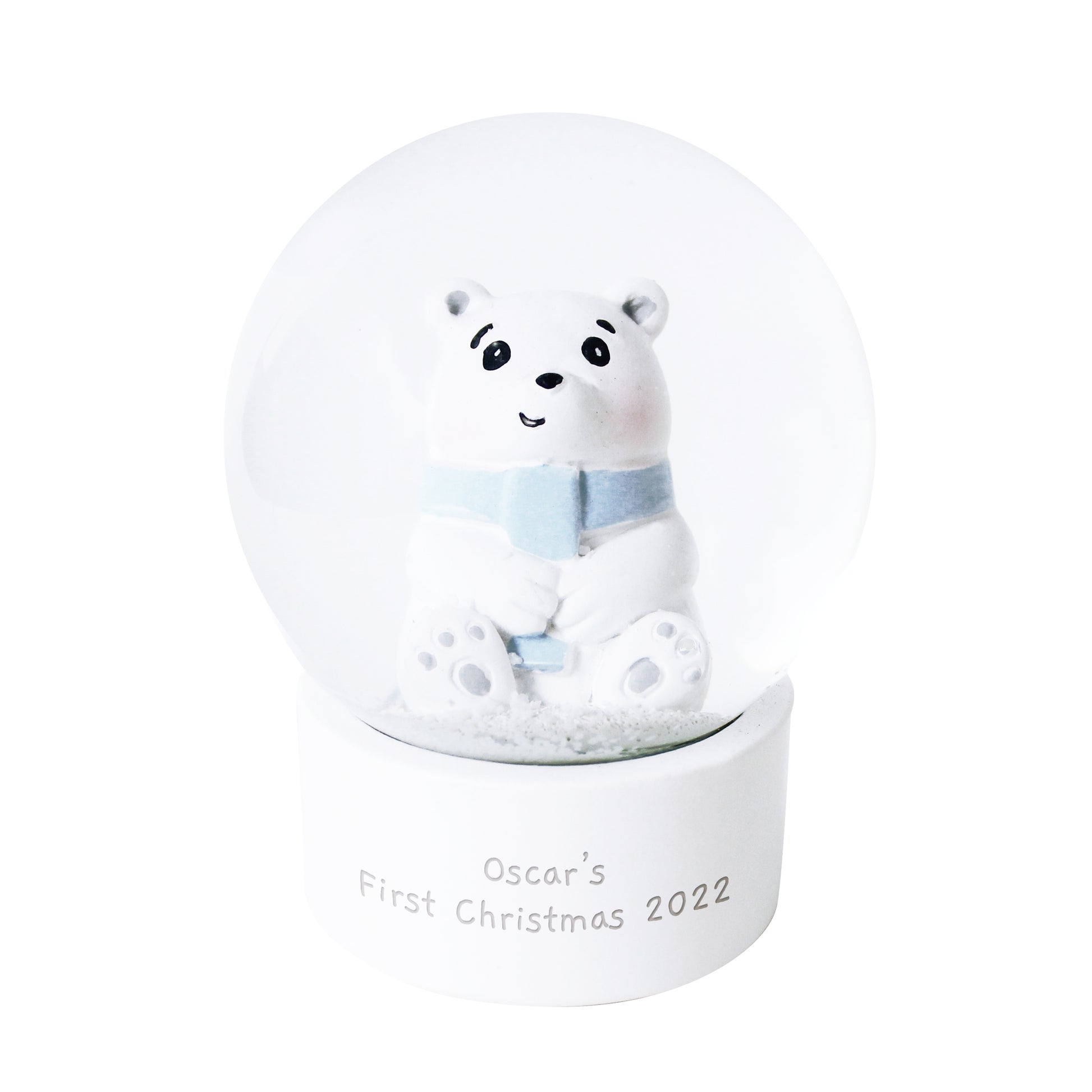 Personalise this ornamental Polar Bear Snow Globe with a name up to 12 characters. All personalisation is case sensitive and will appear as entered.