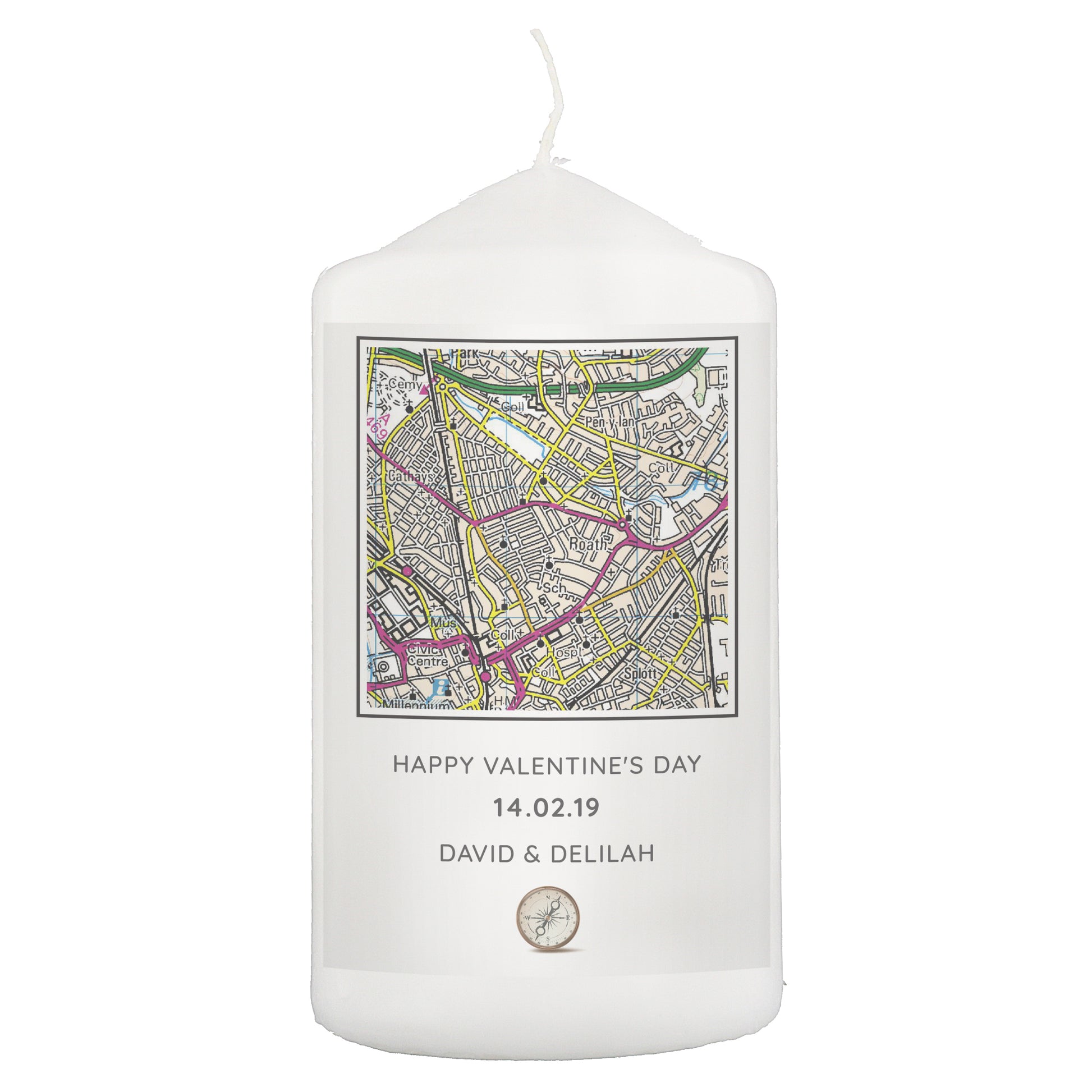 Personalise this Present Day Edition Map Candle with any UK postcode* followed by up to 3 lines of text, with up to 25 characters per line.