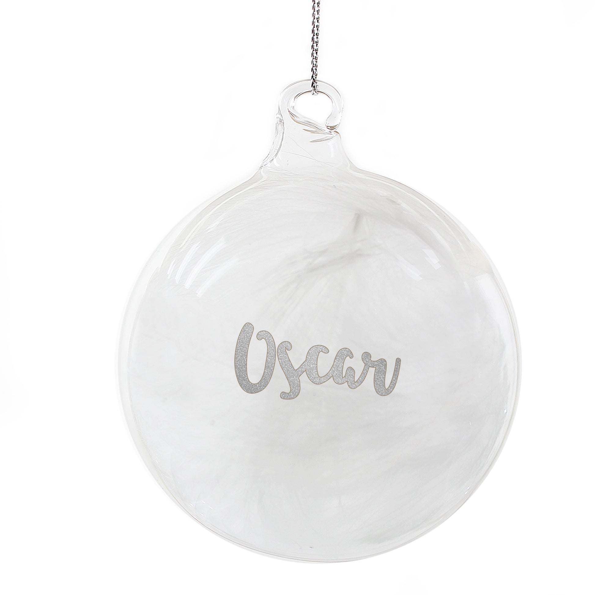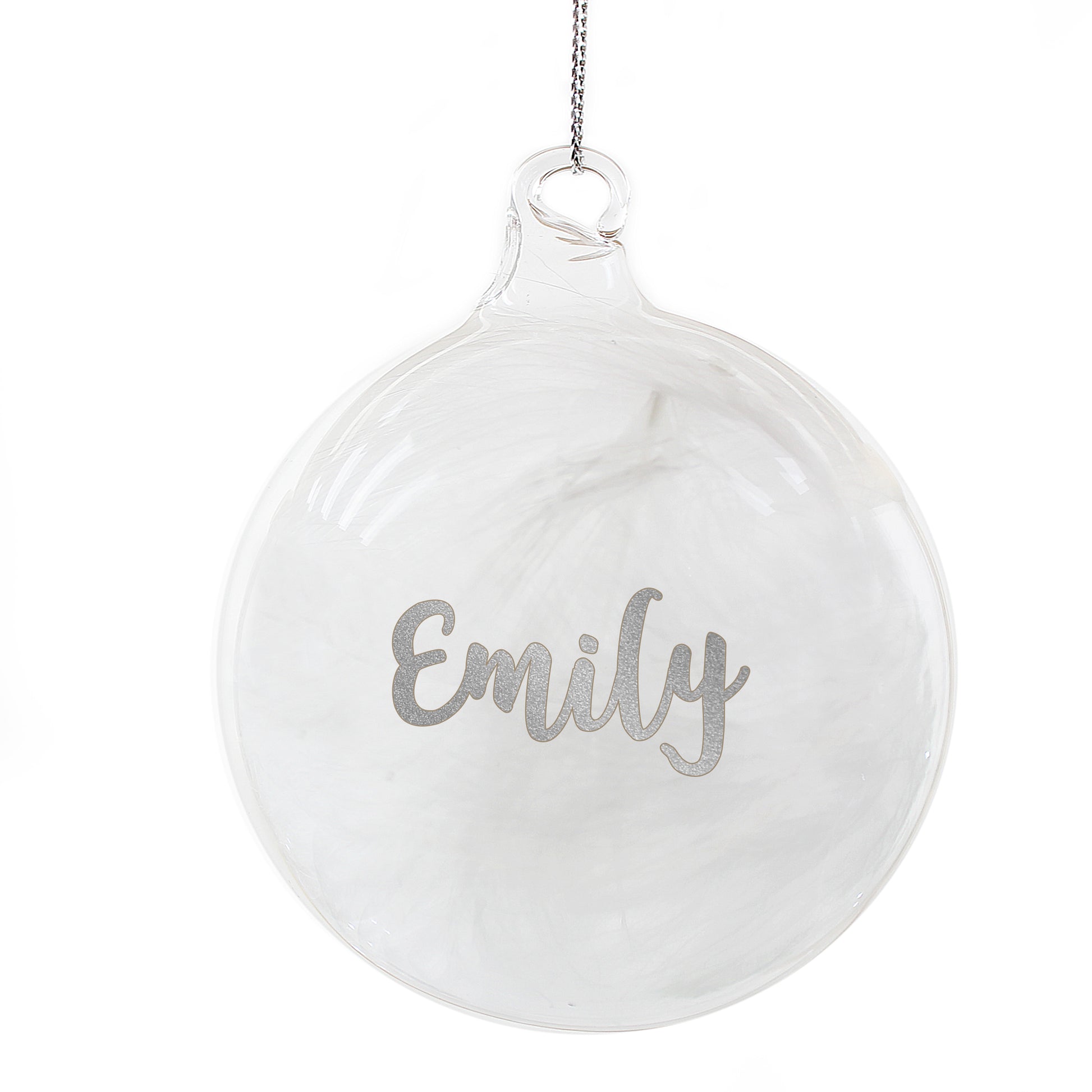Each glass bauble is filled with a delicate white feather, which will look great hung on any Christmas tree!