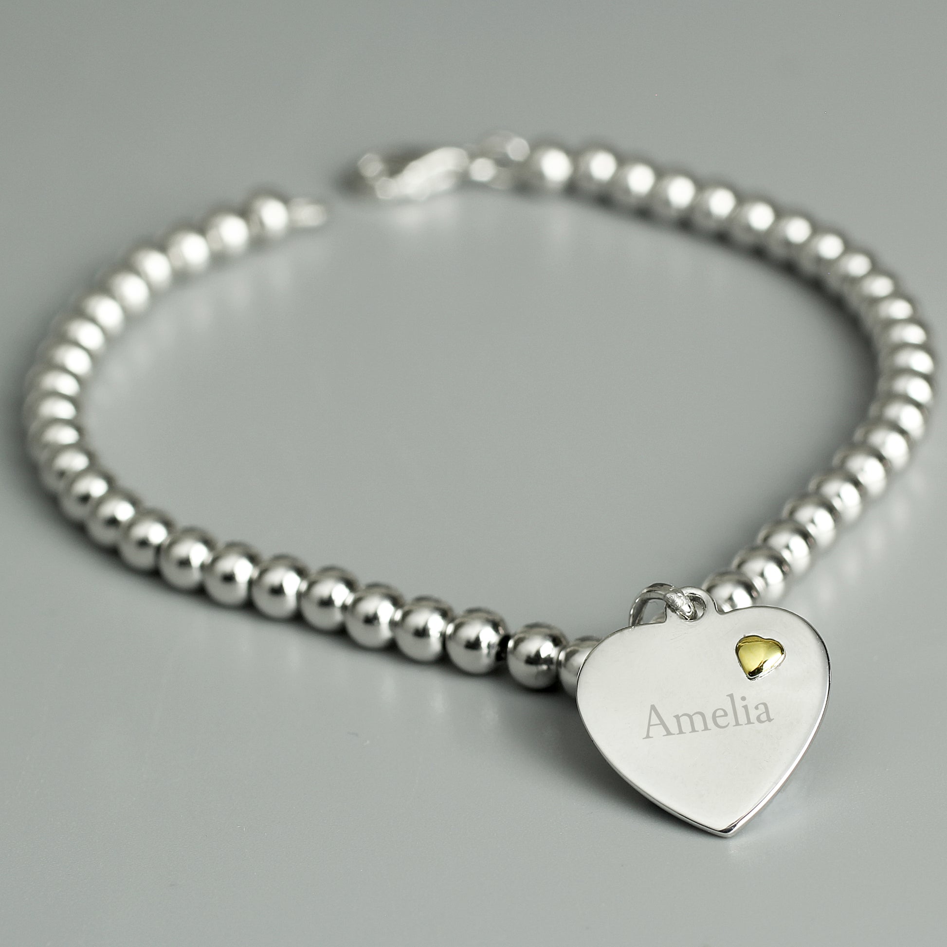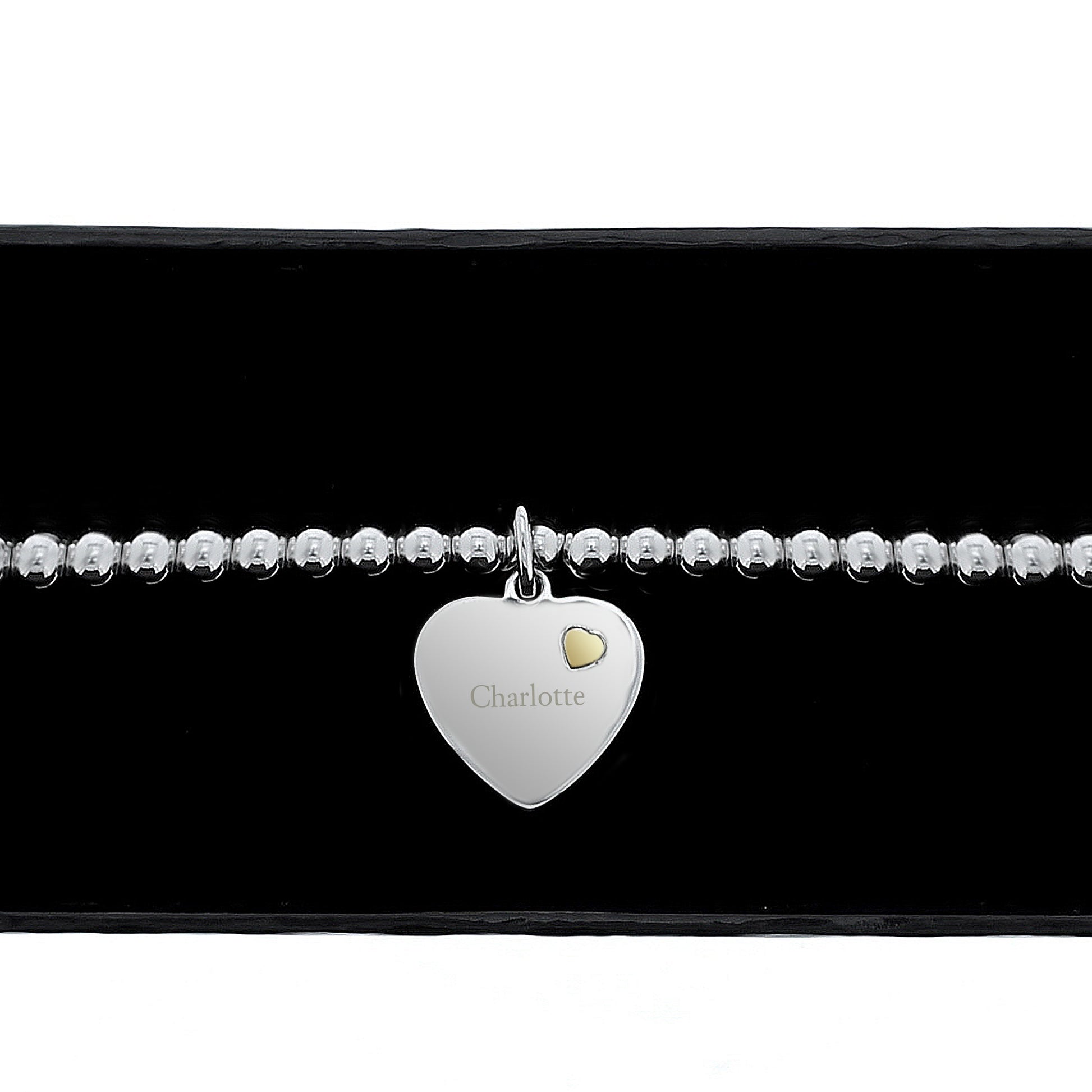 Personalised Sterling Silver and 9ct Gold Heart Bracelet