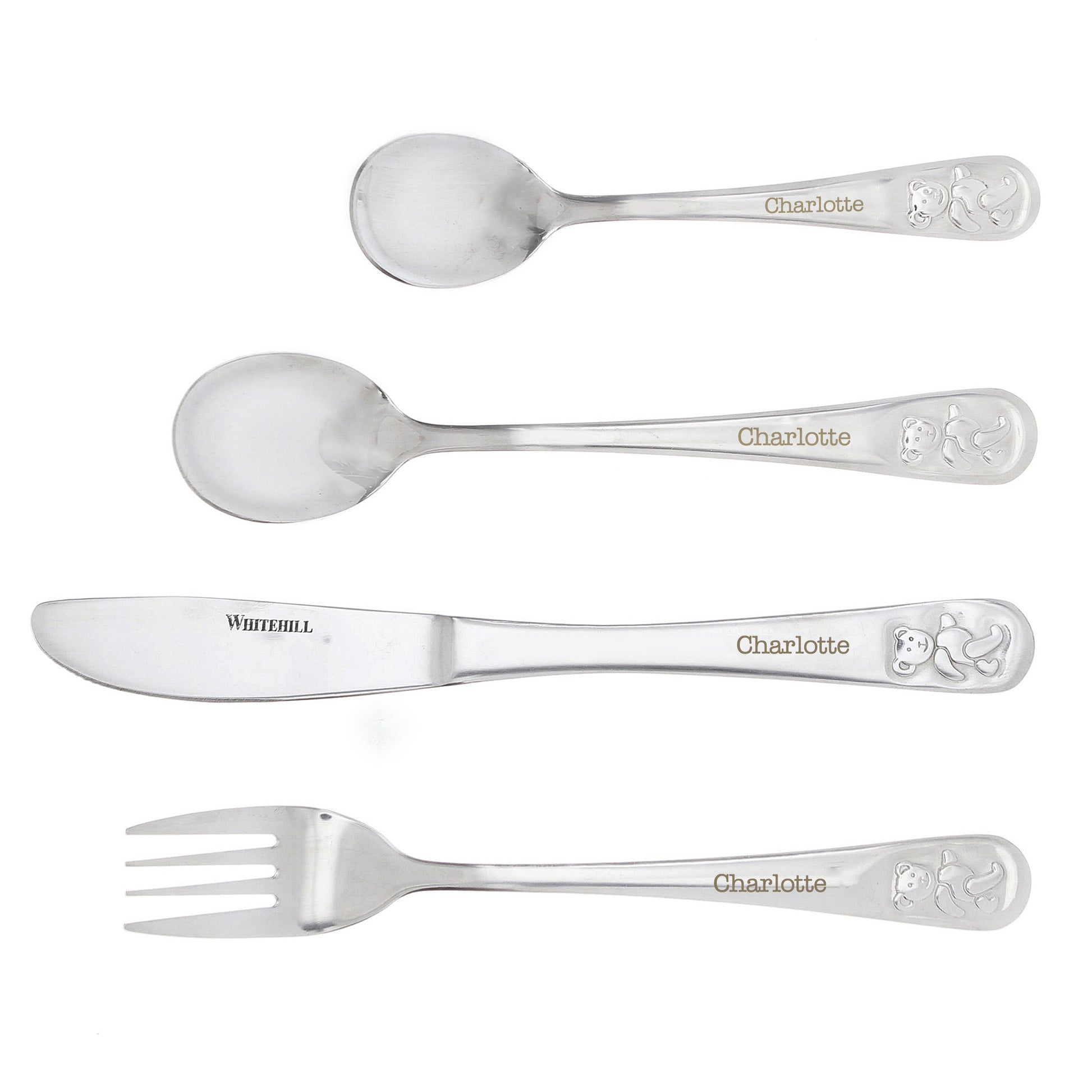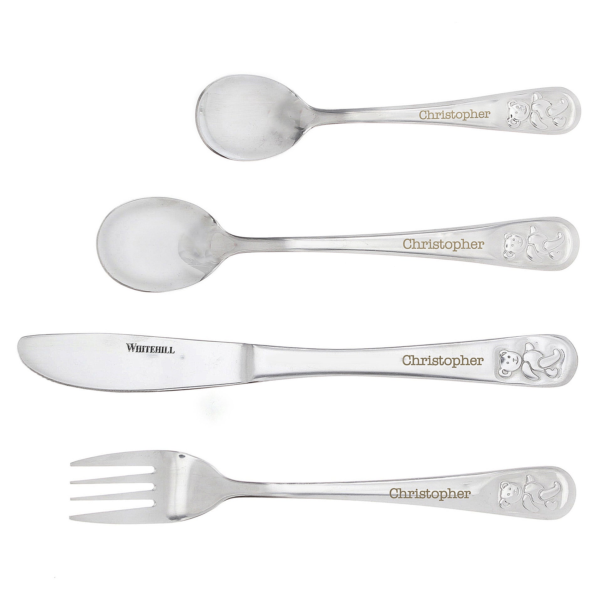 Personalised Teddy 4 Piece Embossed Cutlery Set