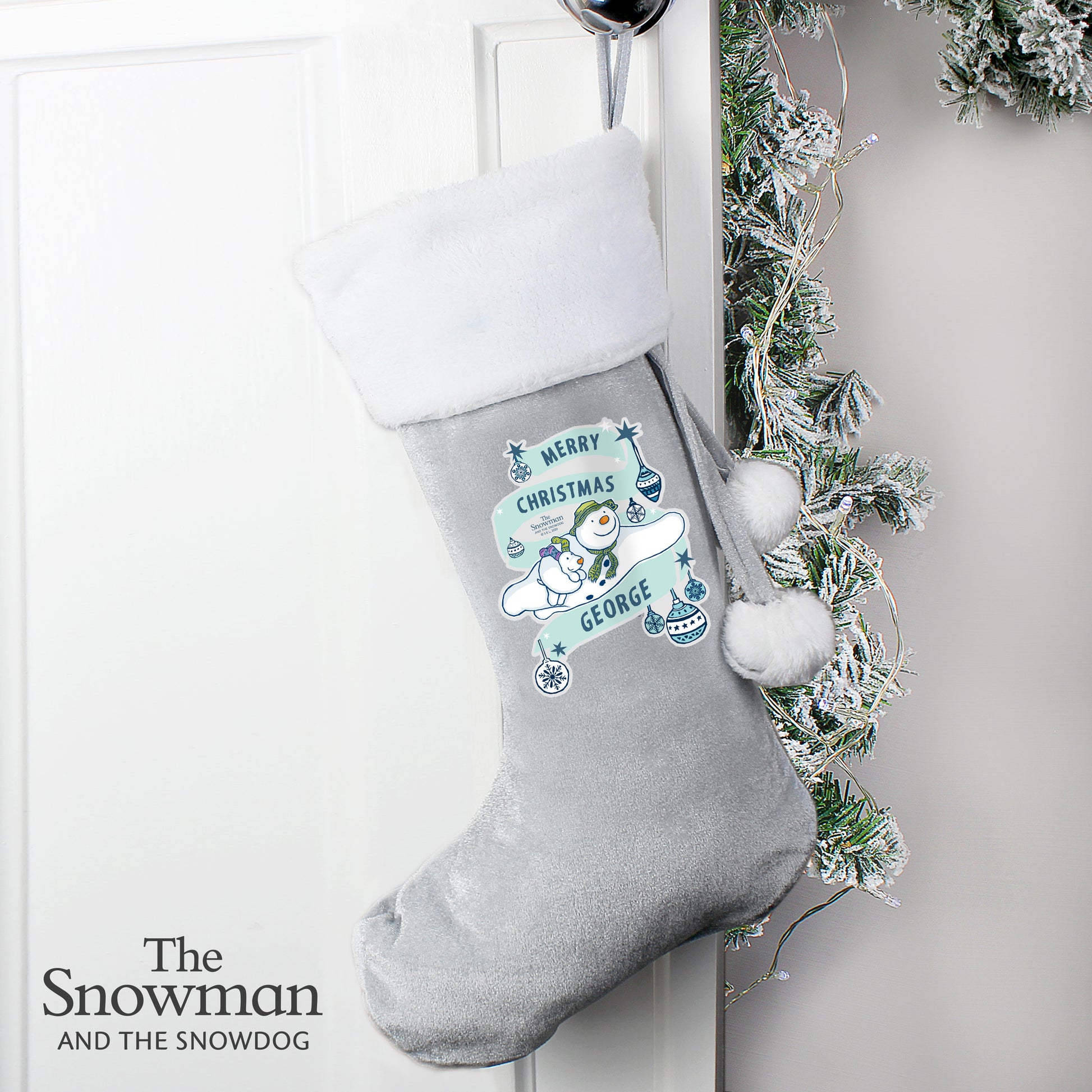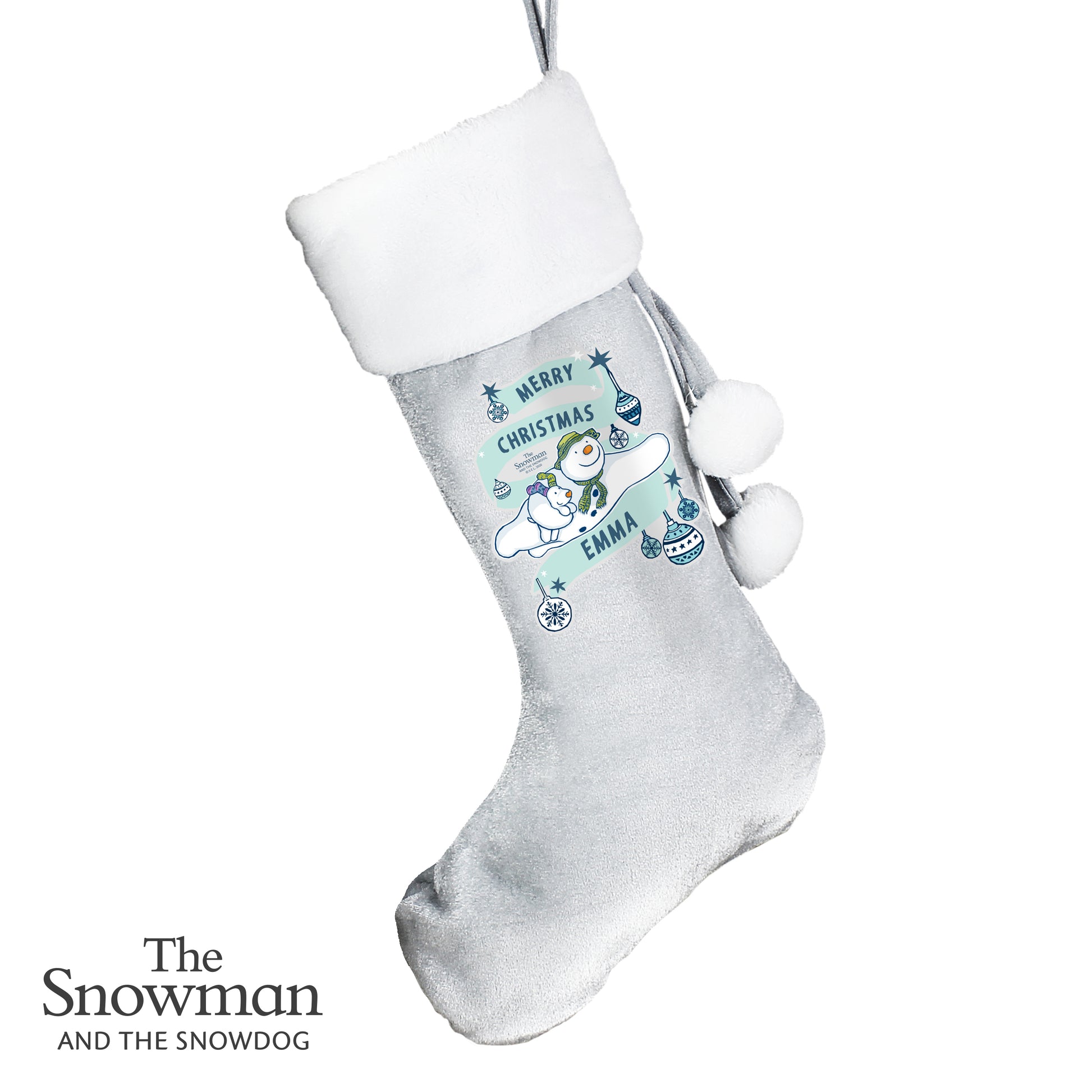 Personalised The Snowman and the Snowdog Luxury Silver Grey Stocking