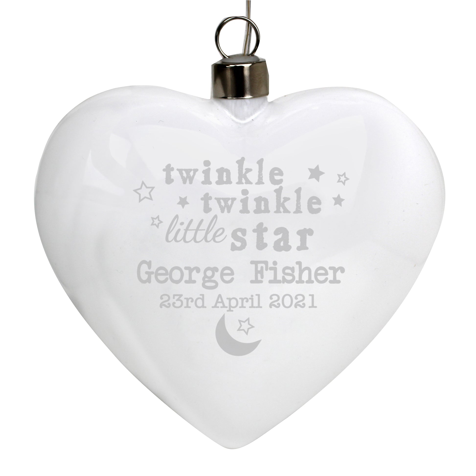 Personalised Twinkle Twinkle LED Hanging Glass Heart