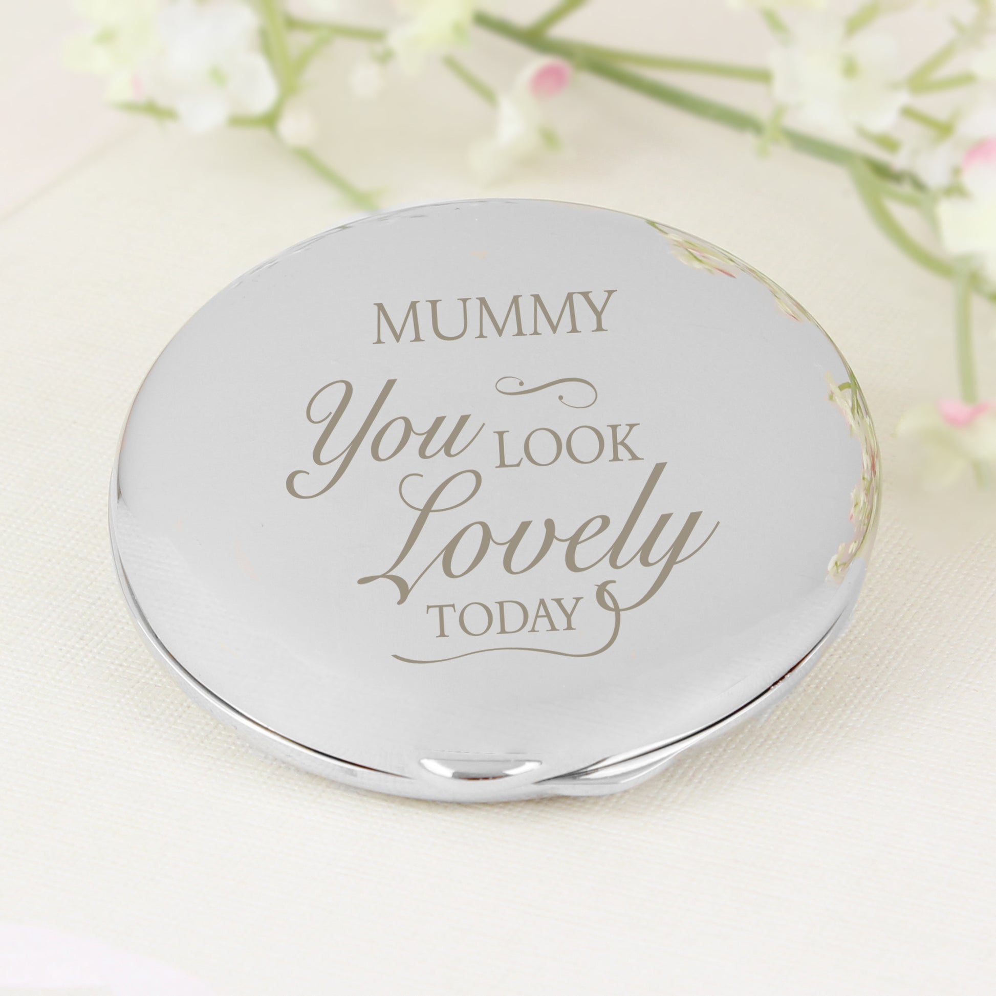 Personalise this compact mirror with a name up to 12 characters in length. The words 'You LOOK Lovely TODAY' are fixed.